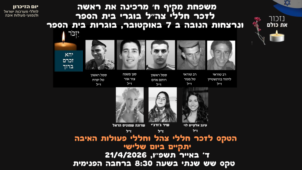 יהי זכרם של כל הנופלים ברוך, צרור בצרור החיים ובלבנו לעד. ![]()